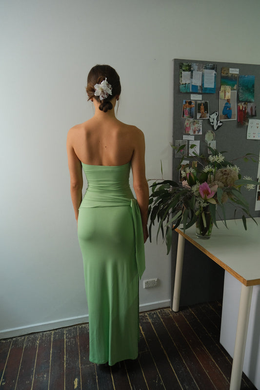 Odysseus & Penelope Draped Strapless Bamboo Dress (Green)